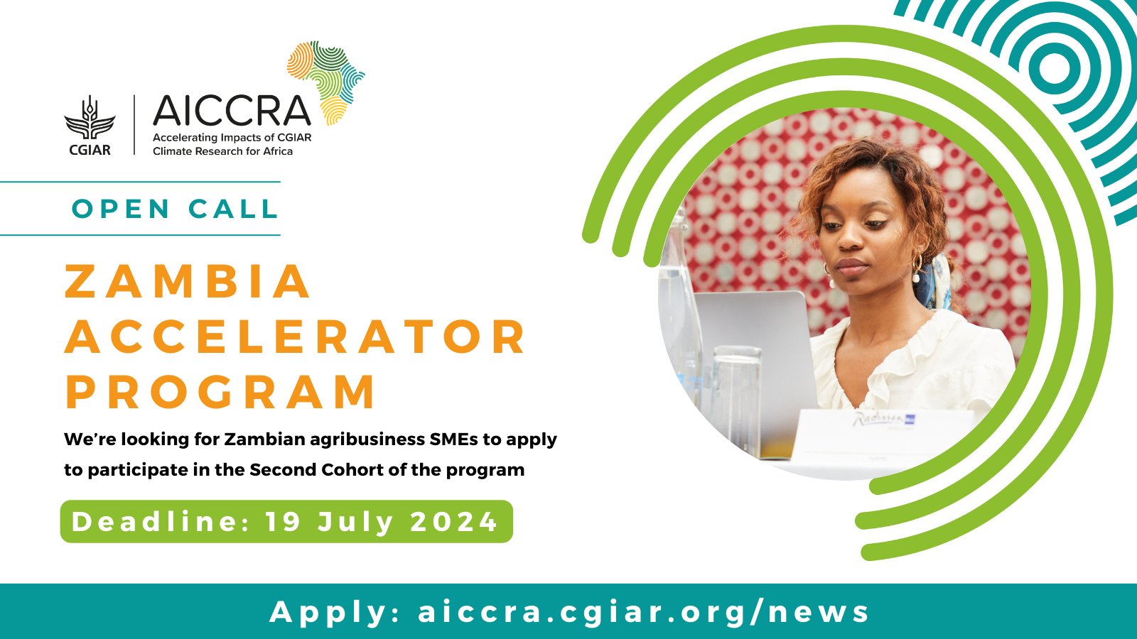 The application window for the AICCRA Zambia Accelerator Grant Program Cohort 2 is now open. SMEs in Zambia’s agribusiness sector with a demonstrated track record and a commitment to developing climate-smart solutions are encouraged to apply. The deadline for applications is July 19, 2024.